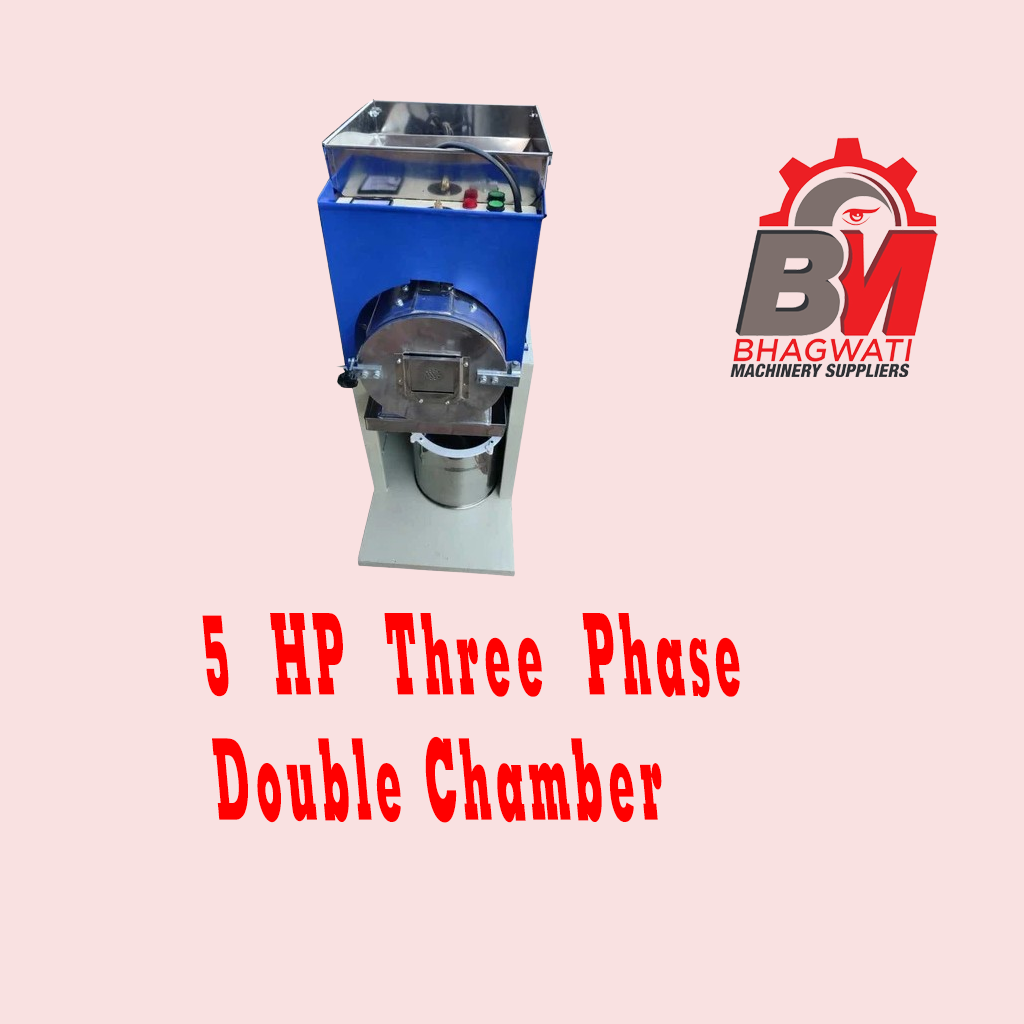 Looking for a heavy-duty solution to handle bulk grinding? Bhagwati Machinery Suppliers brings you the powerful 5 HP Double Chamber Pulverizer. Built with a rugged Mild Steel (MS) body and engineered in India, this machine is designed for continuous, high-volume production.